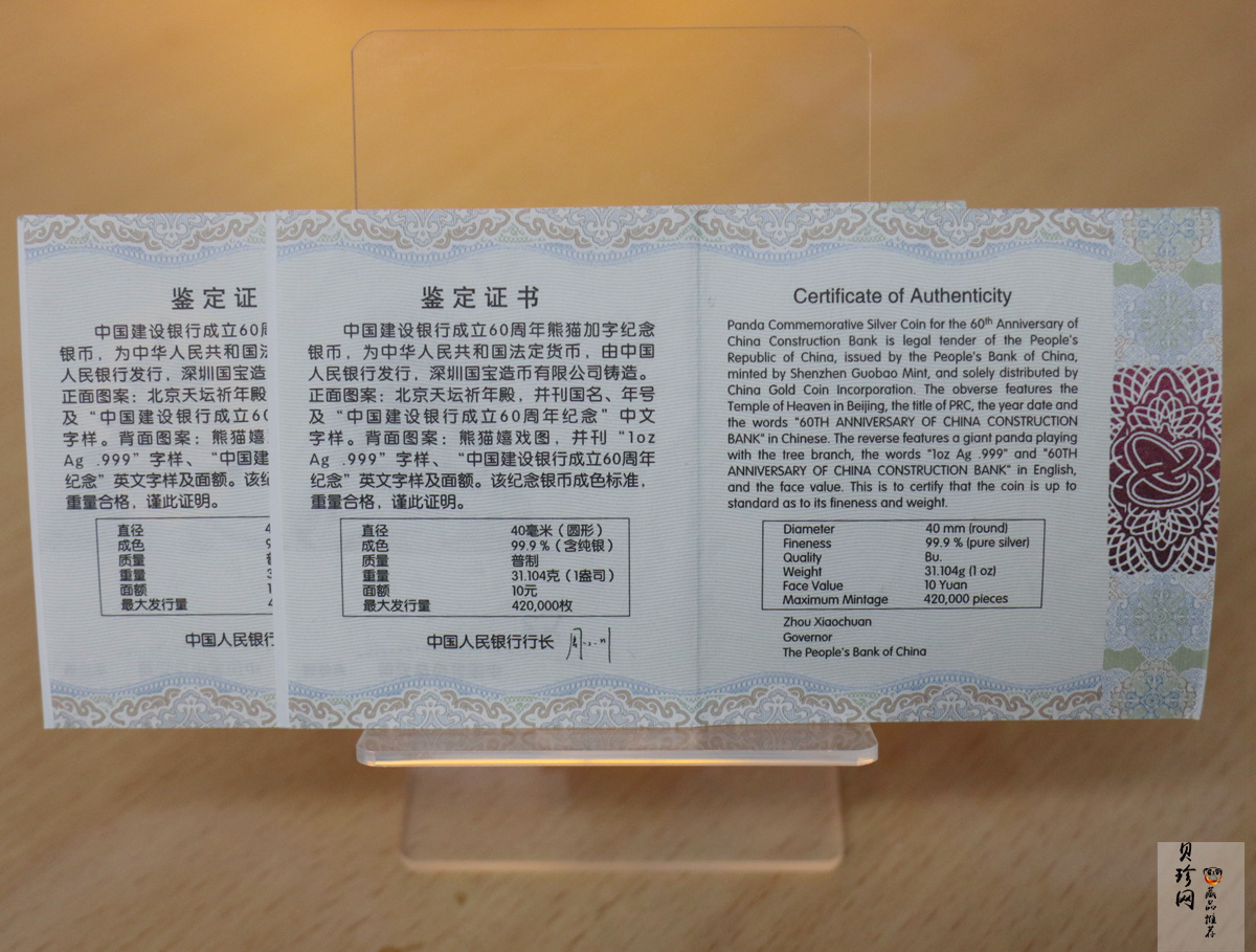 套币:2014年中国建设银行成立60周年熊猫加字1盎司银币2枚一套
