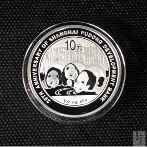 • 【130202】2013年上海浦东发展银行20周年熊猫加字1盎司普制银币