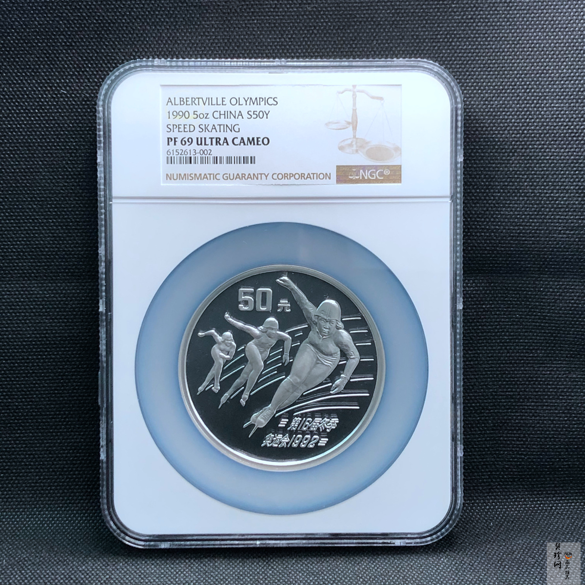 单币:1990年第16届冬奥会金银纪念币-速度滑冰5盎司精制银币