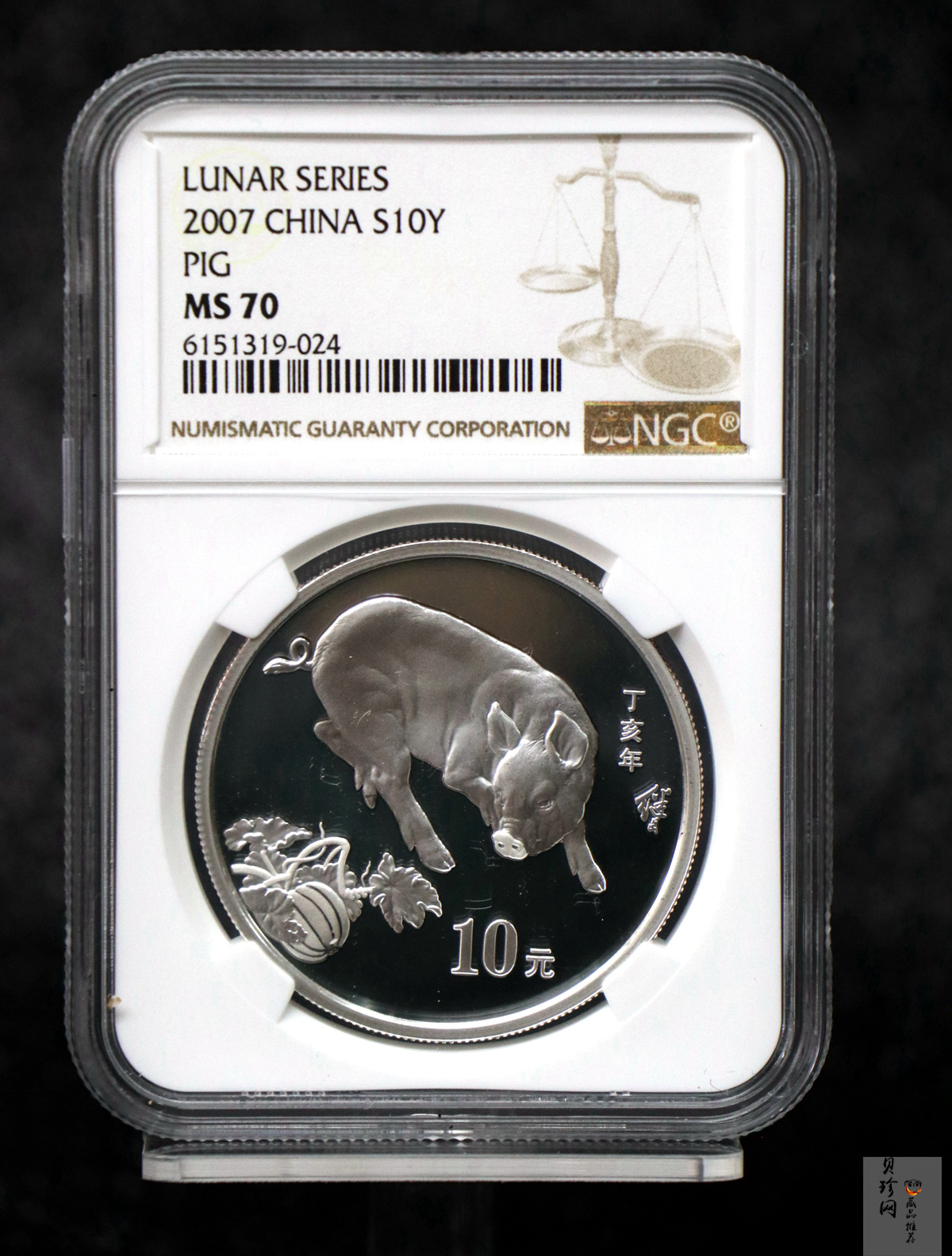 单币:2007年丁亥猪年生肖1盎司普制银币