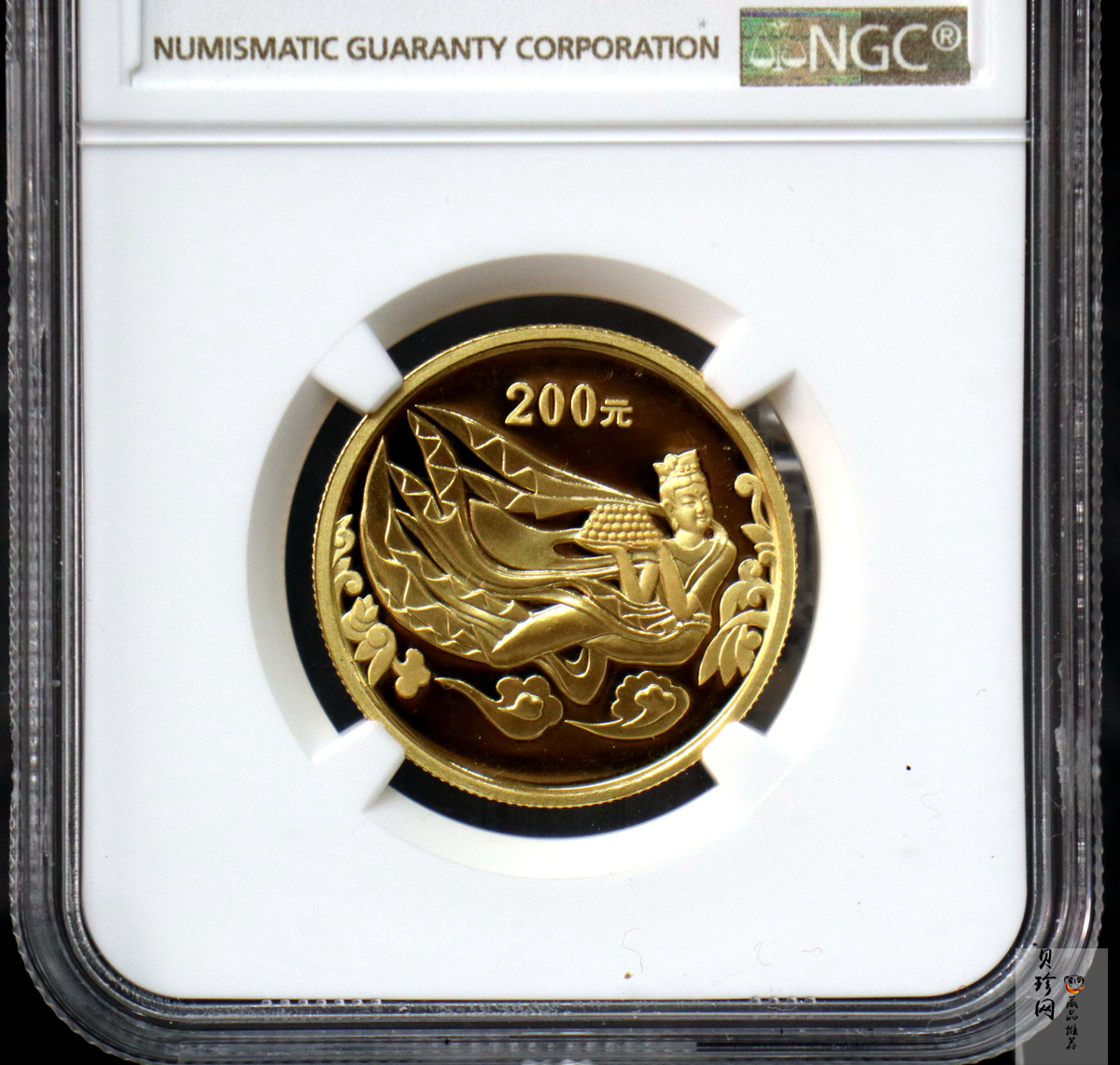【020502】2002年中国石窟艺术(龙门)金银纪念币-飞天图1/2盎司精制金币