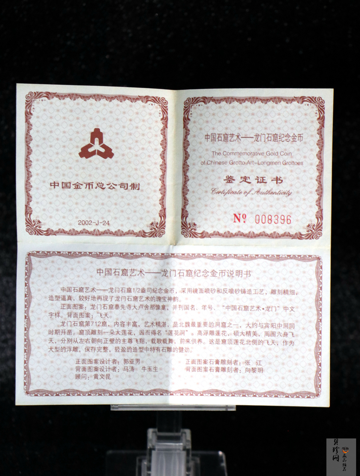• 【020502】2002年中国石窟艺术(龙门)金银纪念币-飞天图1/2盎司精制金币