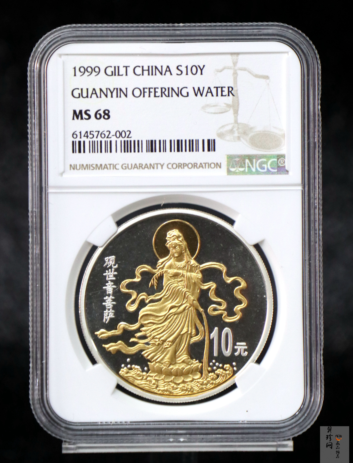 • 【990501】1999年观音纪念银币-滴水观音1盎司镀金普制银币