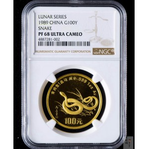 单币:1989中国己巳(蛇)年1盎司精制金币