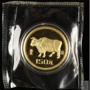 单币:1985中国乙丑(牛)年-五牛图8克精制金币