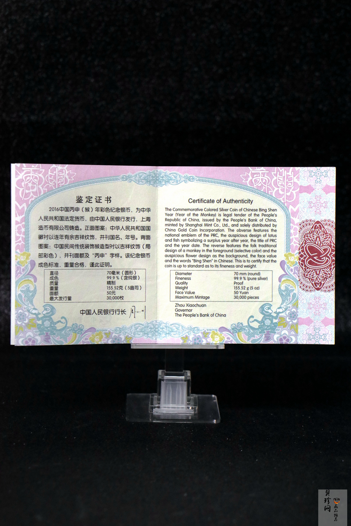 • 【151412】2016年丙申猴年生肖5盎司彩色精制银币