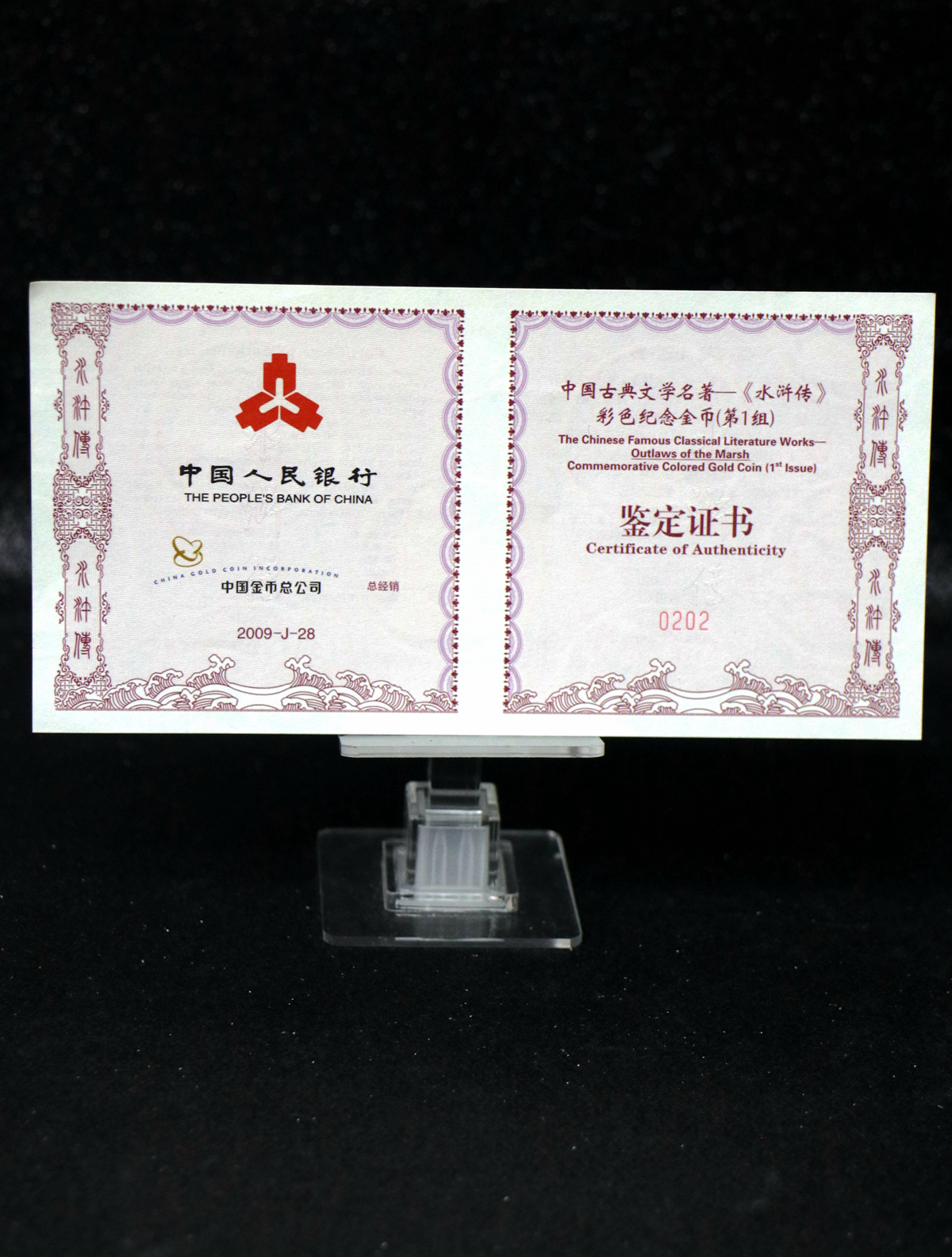 • 【090502】2009年中国古典文学名著《水浒传》第(1)组-智取生辰纲5盎司长方形精制彩金币