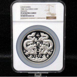 1990年,美国克劳斯出版社和《世界硬币新闻》联合发起的世界硬币大奖评选活动揭晓,1988“戊辰( 龙)年”9枚金银铂纪念币中,正面图案为长城,面额100元,重量为12盎司的精制银币荣获“最佳银币奖”,这也是中国现代金银纪念币第五次在此项活动中夺冠。