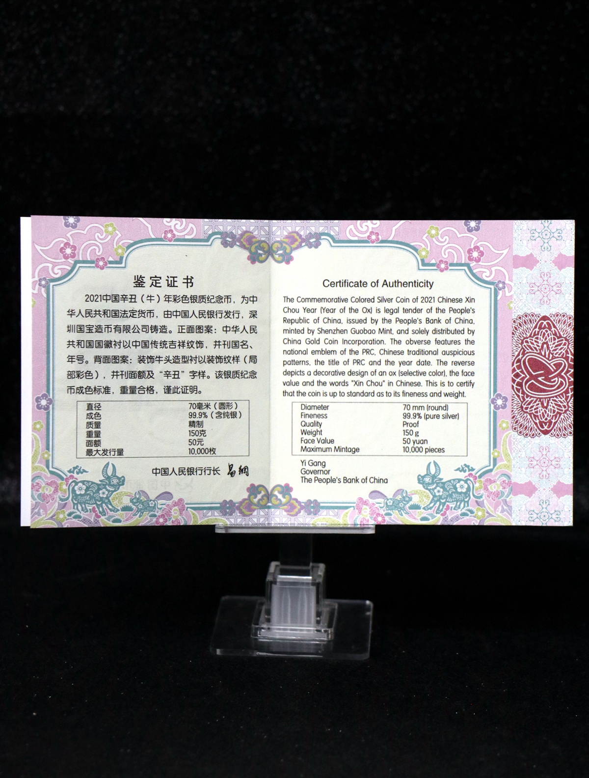 单币:2021年中国辛丑(牛)年150g圆形彩色精制银币