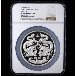 1990年,美国克劳斯出版社和《世界硬币新闻》联合发起的世界硬币大奖评选活动揭晓,1988“戊辰( 龙)年”9枚金银铂纪念币中,正面图案为长城,面额100元,重量为12盎司的精制银币荣获“最佳银币奖”,这也是中国现代金银纪念币第五次在此项活动中夺冠。