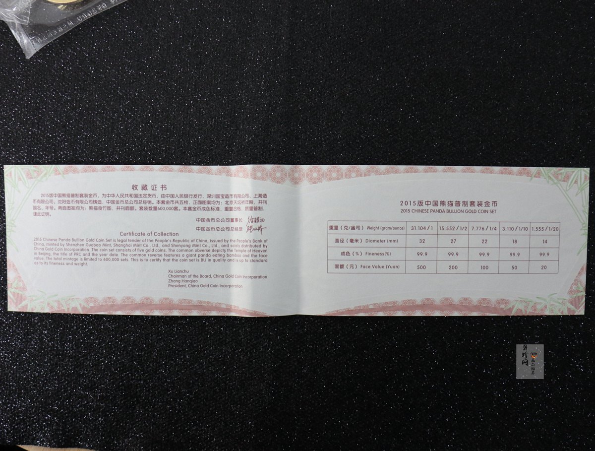 套币:2015年熊猫普制金币5枚一套