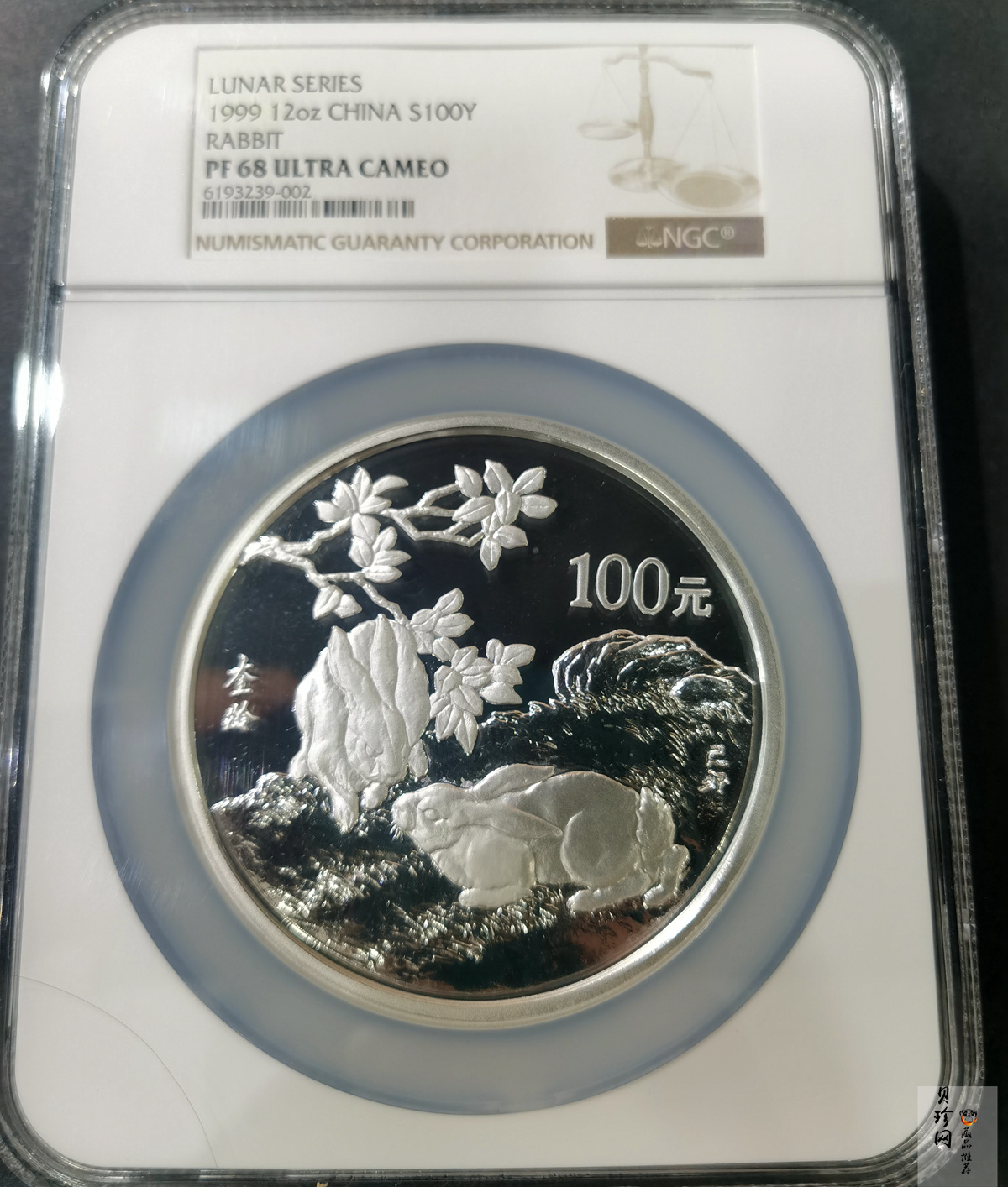 单币:1999中国己卯(兔)年金银铂纪念币-刘奎龄绘《双兔图》12盎司精制银币