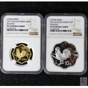 套币:2017年丁酉(鸡)年生肖流通纪念币-精制梅花金银币2枚一套