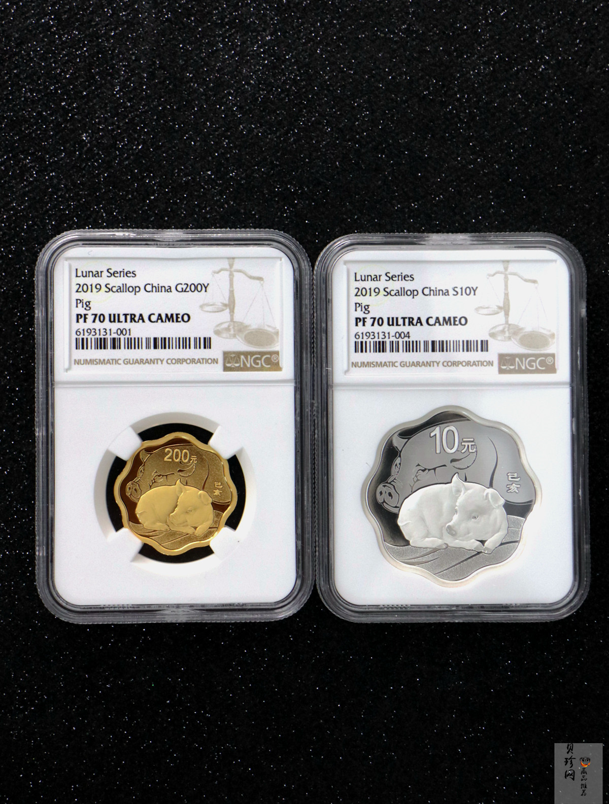 • 【199070】2019中国己亥(猪)年生肖精制梅花形金银币2枚一套