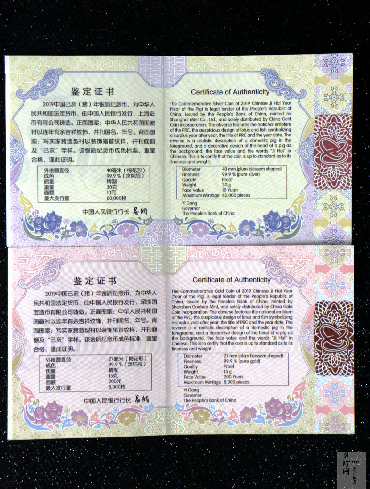 套币:2019中国己亥(猪)年生肖精制梅花形金银币2枚一套
