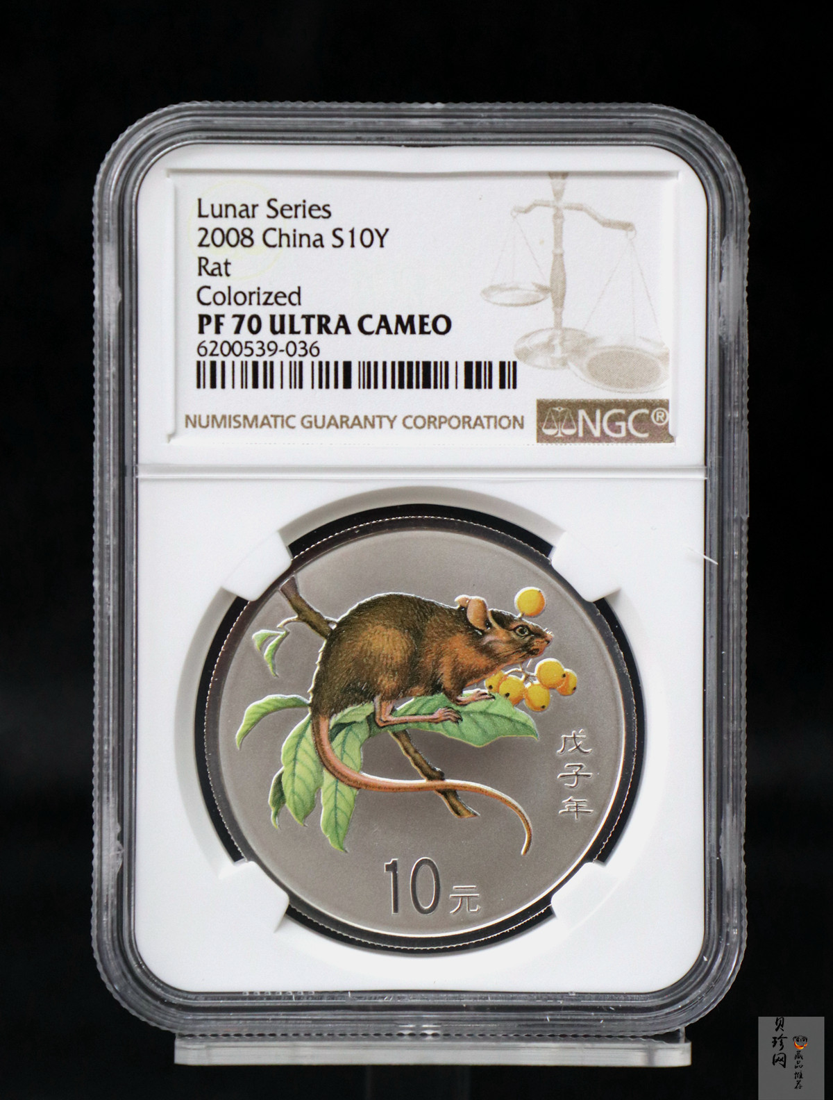 单币:2008年戊子鼠年生肖1盎司精制彩银币