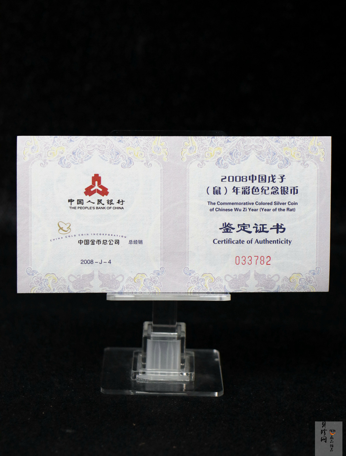 【070809】2008年戊子鼠年生肖1盎司精制彩银币