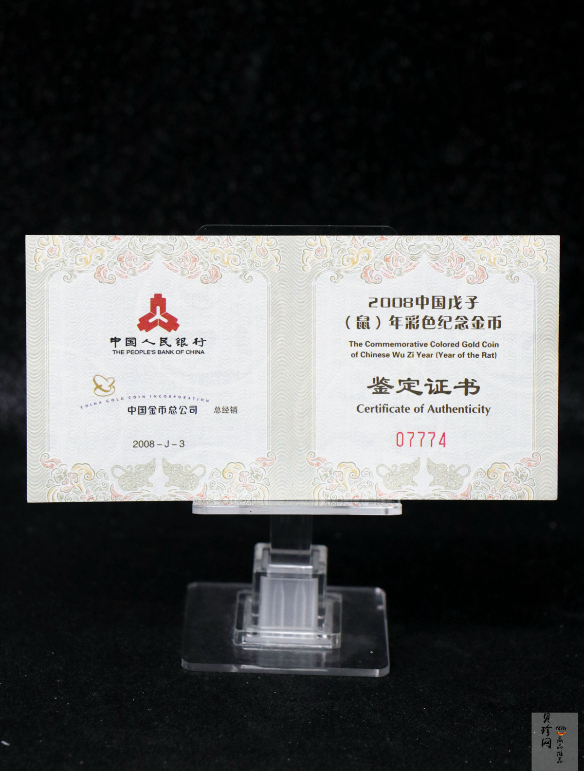 【070806】2008年戊子鼠年生肖1/10盎司精制彩金币