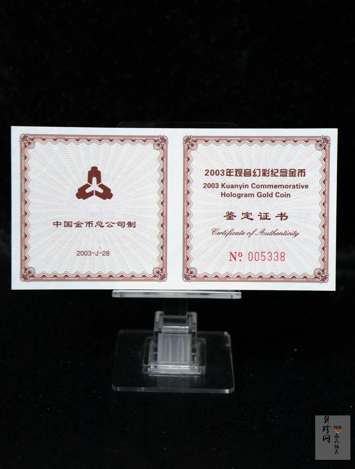 • 【031001】2003年观音纪念币-观音像1/10盎司圆形幻彩精制金币