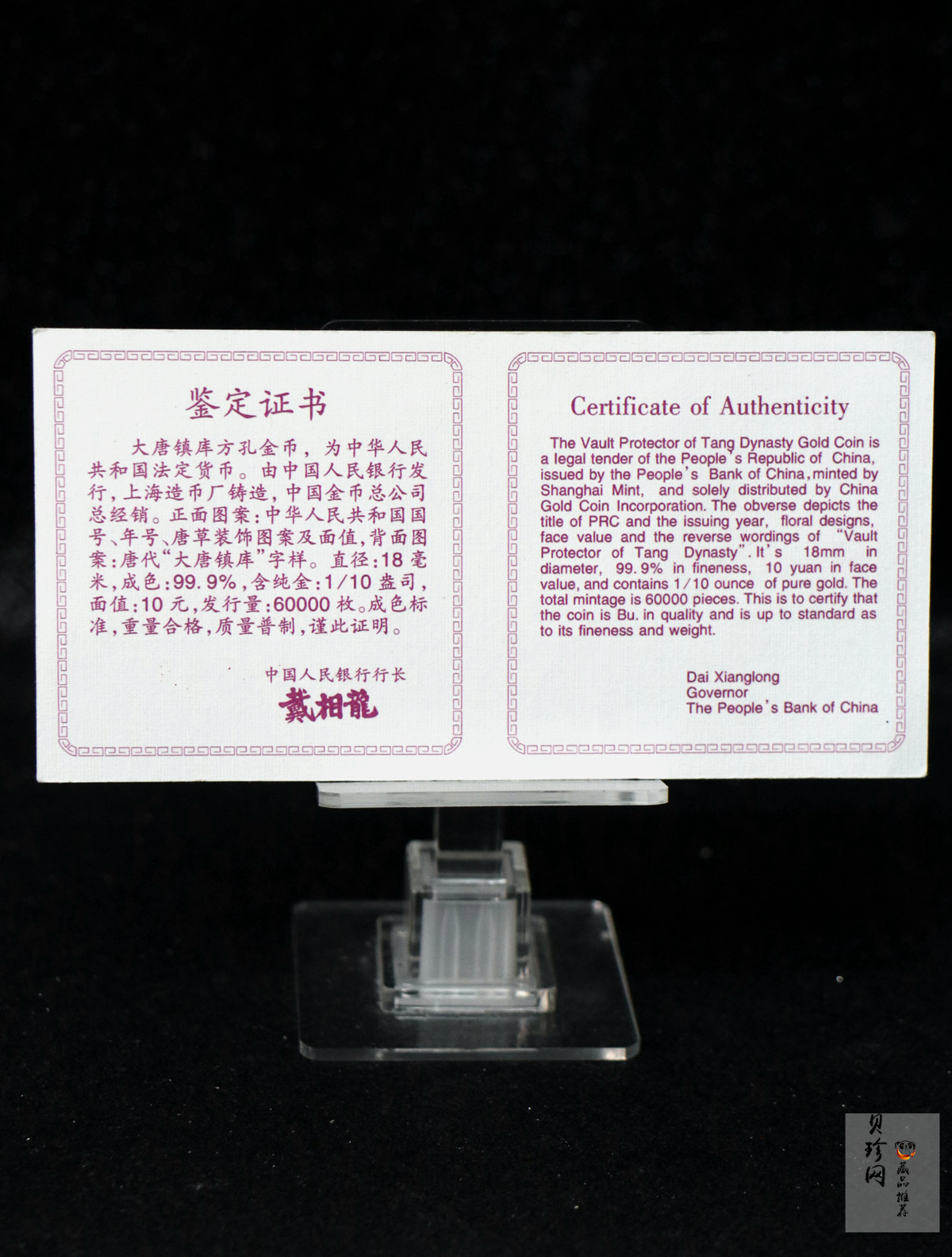 【981502】1998年大唐镇库金钱金银纪念币1/10盎司普制金币