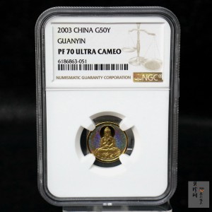 • 【031001】2003年观音纪念币-观音像1/10盎司圆形幻彩精制金币
