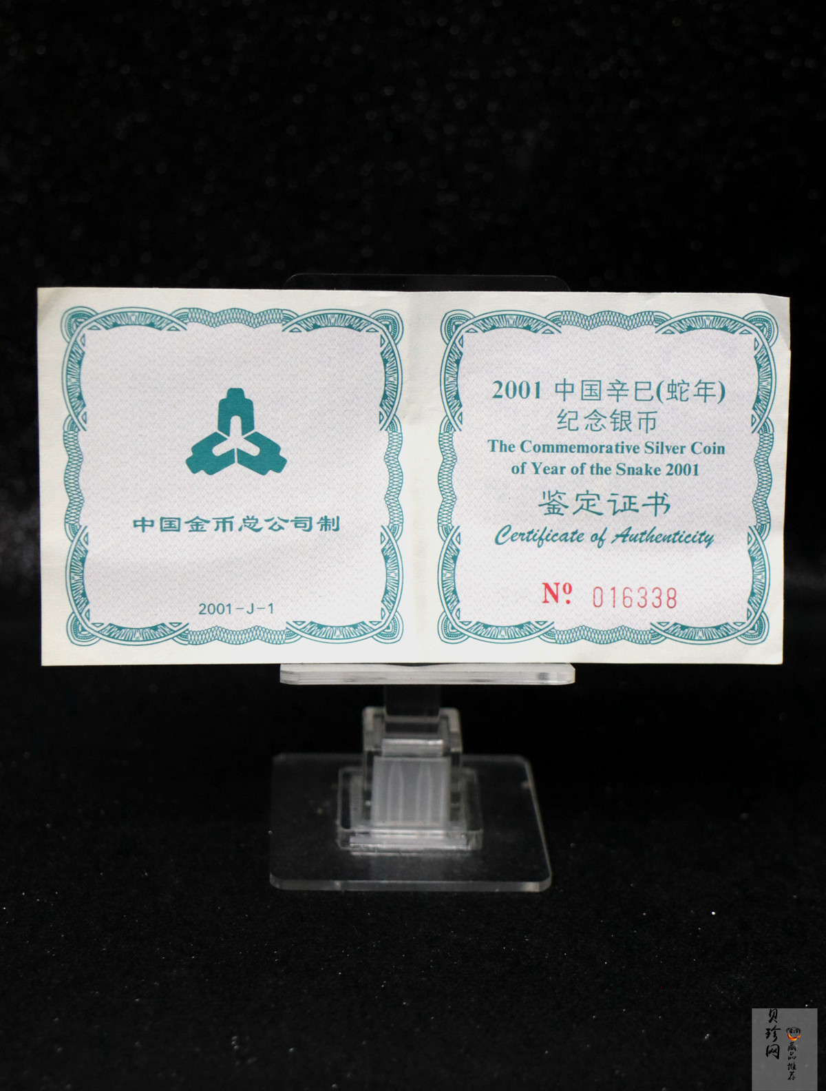 【010211】2001中国辛巳(蛇)年金银纪念币-游蛇图1盎司扇形普制银币