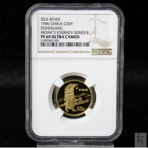 古老的丝绸之路连接着世界的东方与西方,孕育了光辉灿烂的古代文明。这里有令后人惊叹的东西方艺术珍宝、凝聚古代劳动人民智慧的发明创造、异彩纷呈、扑朔迷离的文化古迹和典籍,吸引着一代又一代的人去探索,去发掘。“中国丝绸之路”金银纪念币全面记录了古丝绸之路的经济、历史、文化和发展脉络,深入揭示千年丝绸之路的文化内涵以及对于人类的伟大贡献。这套纪念币发行于20世界90年代,但其所代表的中西文明的接触碰撞,所昭示的“文明只有在学习、交流中才能更加发展”这个主旨,在各种文明激烈碰撞和战火硝烟弥漫的当今世界仍然有着非常重要的意义。