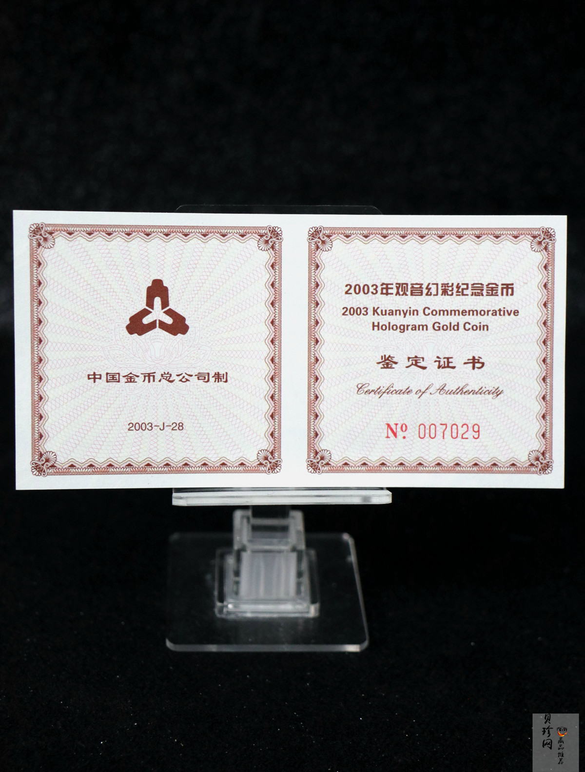 • 【031001】2003年观音纪念币-观音像1/10盎司圆形幻彩精制金币