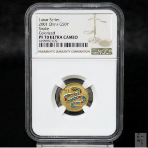 • 【010205】2001中国辛巳(蛇)年金银纪念币-彩蛇图1/10盎司彩色精制金币