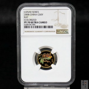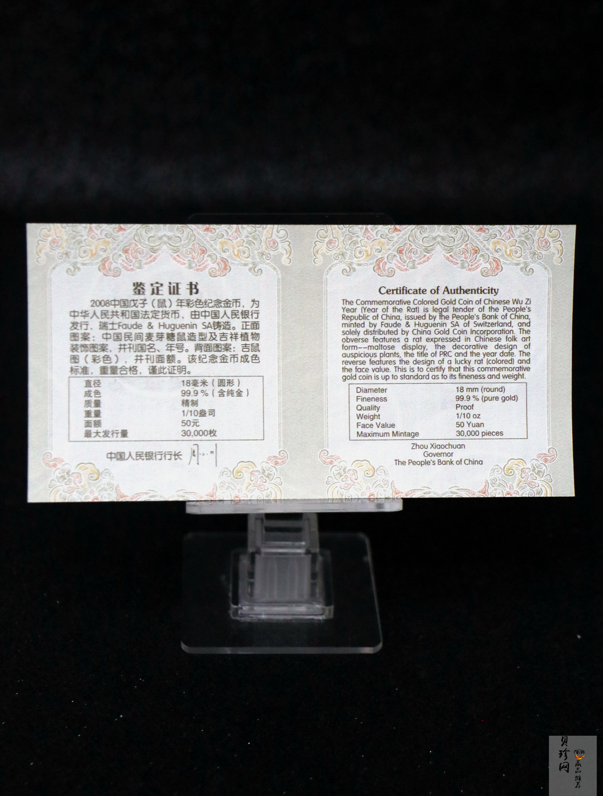 【070805】2008年戊子鼠年生肖1/10盎司精制彩金币