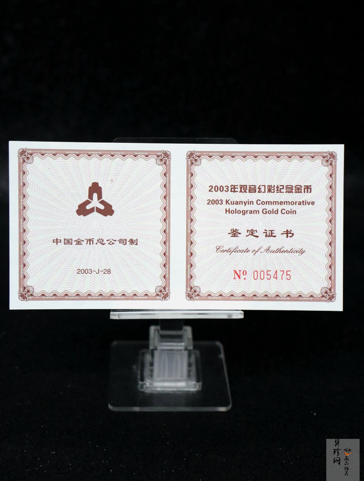 • 【031001】2003年观音纪念币-观音像1/10盎司圆形幻彩精制金币