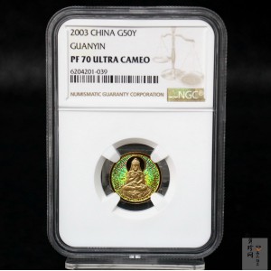 • 【031001】2003年观音纪念币-观音像1/10盎司圆形幻彩精制金币