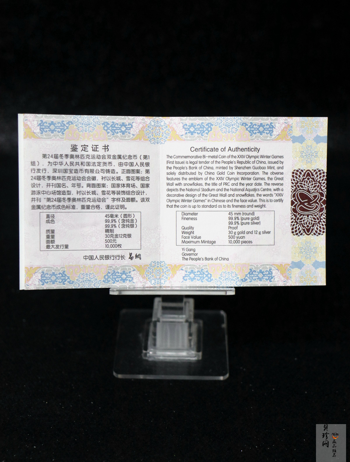 【200802】2022年第24届冬季奥林匹克运动会(第1组)30克金12克银圆形双金属纪念币
