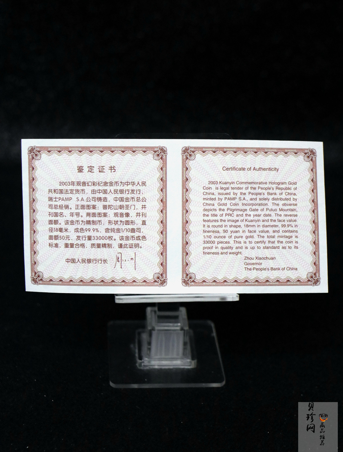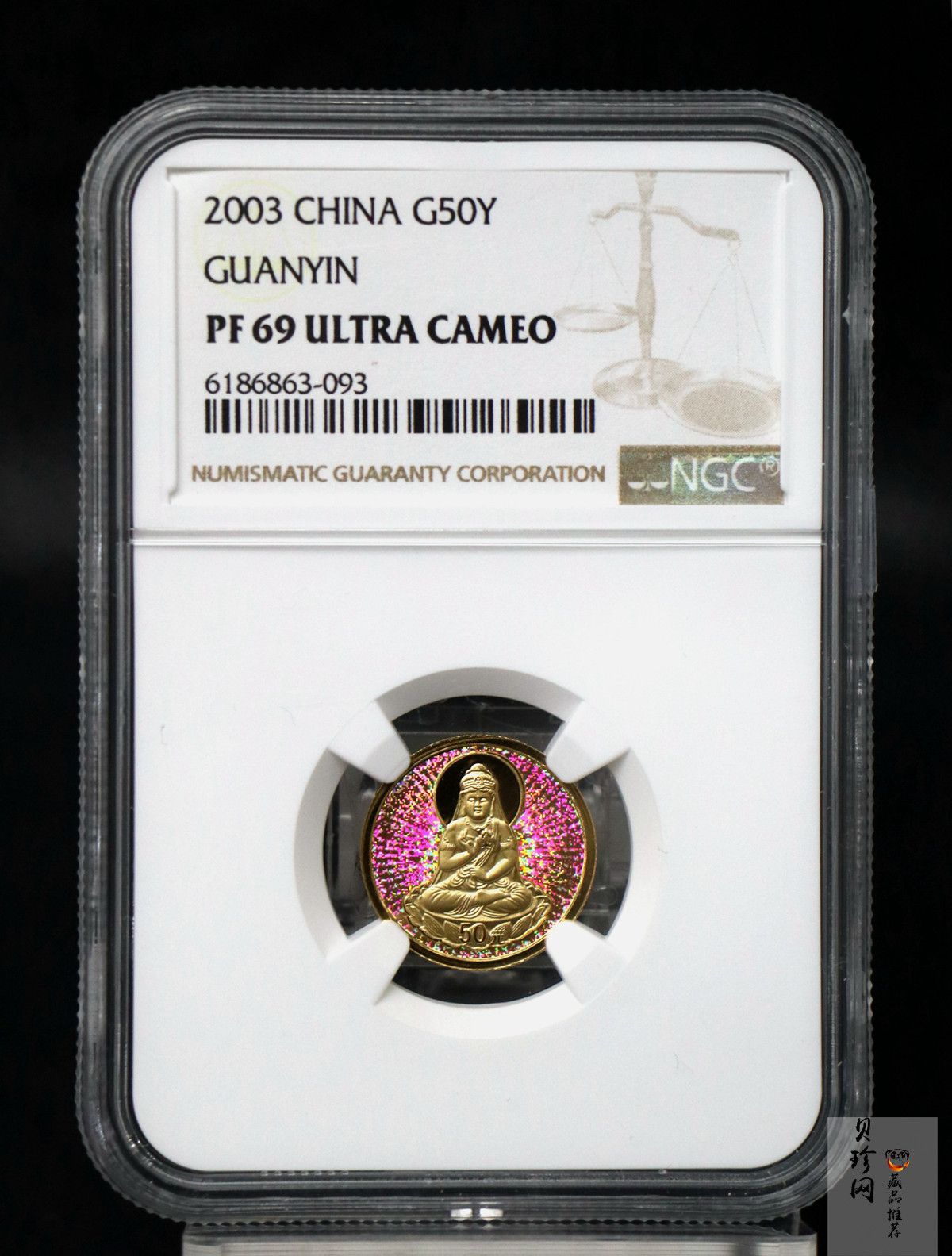 • 【031001】2003年观音纪念币-观音像1/10盎司圆形幻彩精制金币