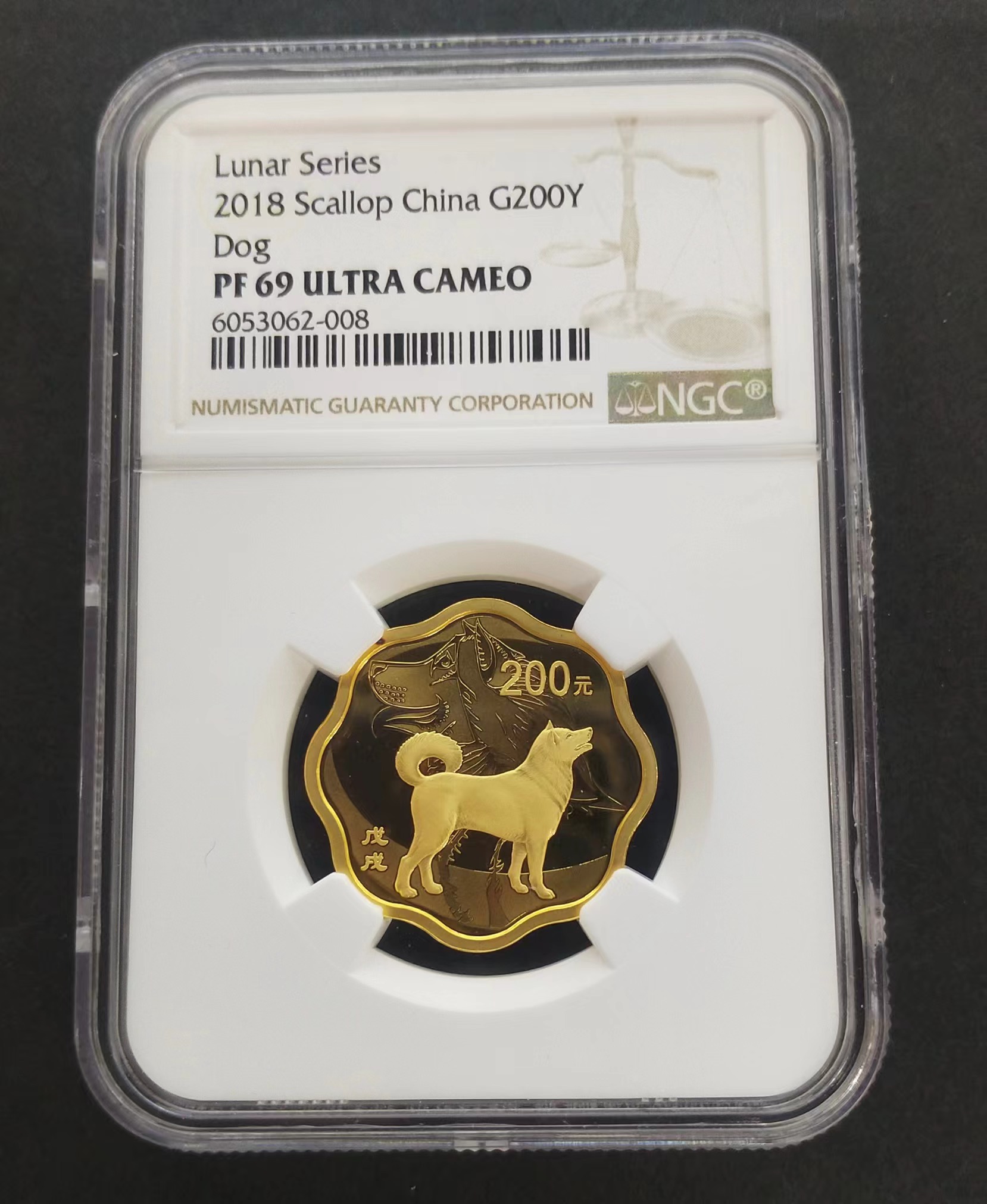 2018中国戊戌(狗)年金银纪念币正面图案均为“中华人民共和国国徽,衬以连年有余吉祥纹饰,并刊国名、年号”,背面图案有“写实狗造型,衬以装饰狗纹样”和“中国民间传统装饰狗造型,衬以吉祥纹饰(局部彩色)”两种。而这套纪念币除了造型独特外,形状上也别具一格,除了传统的圆形风格外,增加了扇形、梅形、长方形,精致工艺彰显精美与独特。