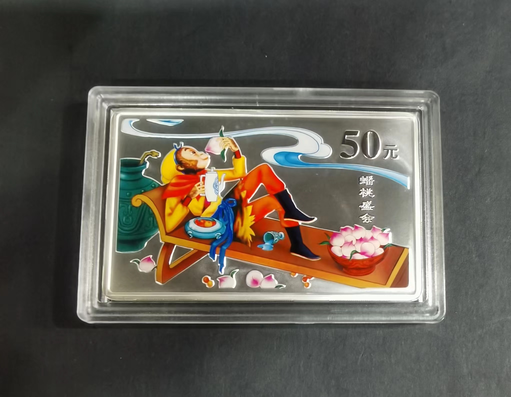 单币:2003年中国古典文学名著——《西游记》彩色银纪念币(第1组)-蟠桃盛会5盎司长方形彩色精制银币