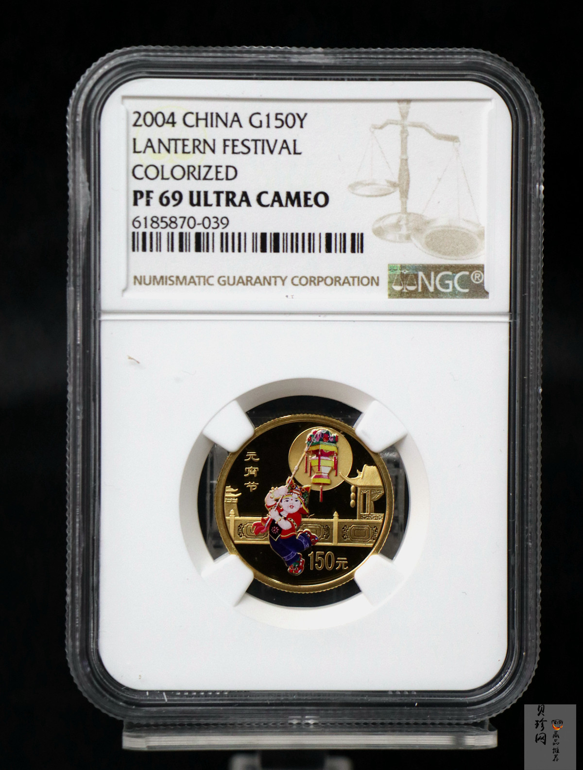 • 【040301】2004年中国民俗——元宵节金纪念币1/3盎司彩色精制金币