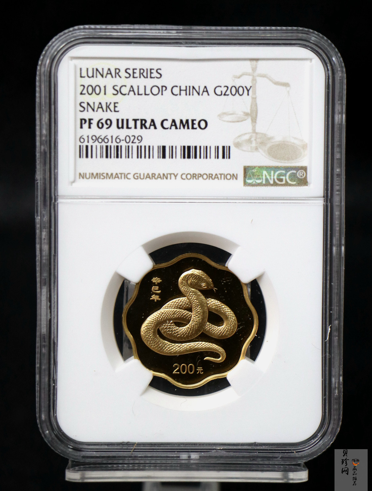 【010203】2001中国辛巳(蛇)年金银纪念币-盘蛇图1/2盎司梅花精制金币