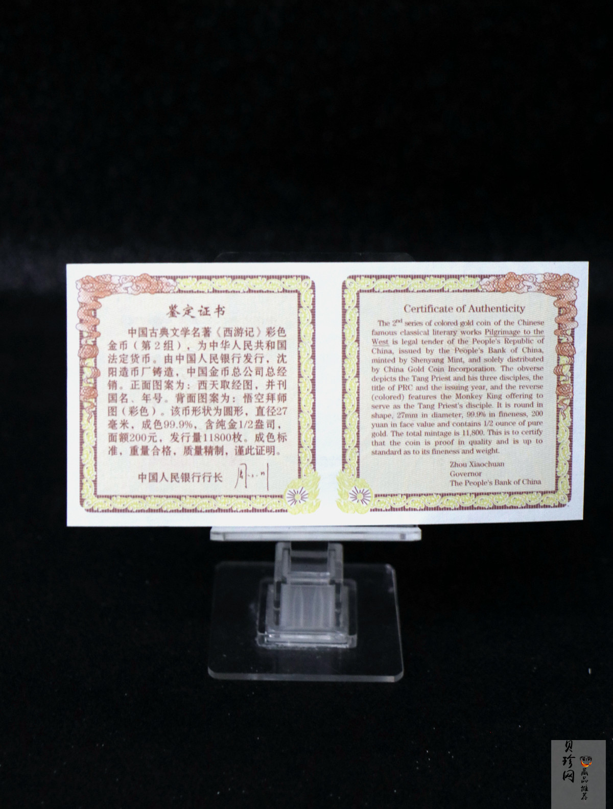 • 【040502】2004年中国古典文学名著——《西游记》彩色金纪念币(第2组)1/2盎司彩色精制金币