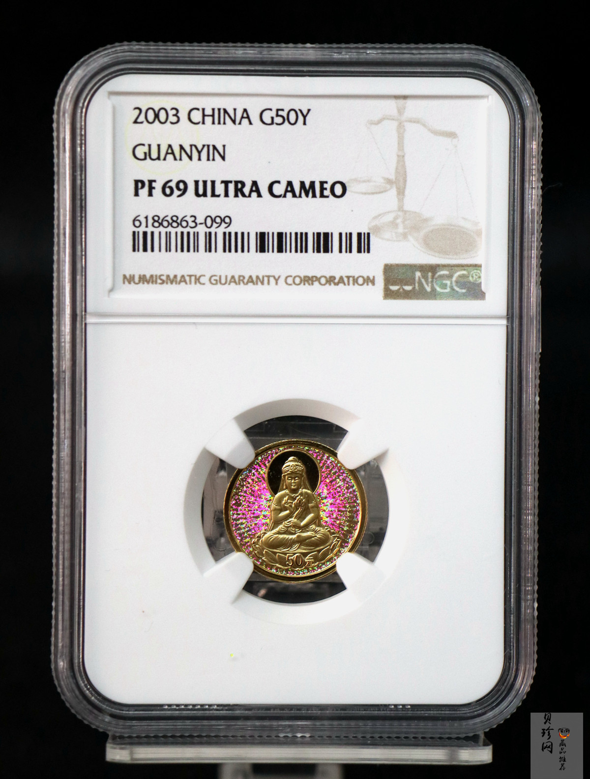 • 【031001】2003年观音纪念币-观音像1/10盎司圆形幻彩精制金币