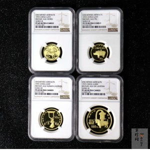 【939120】1993年中国出土文物(青铜器)金银纪念币(第3组)精制金币四枚一套