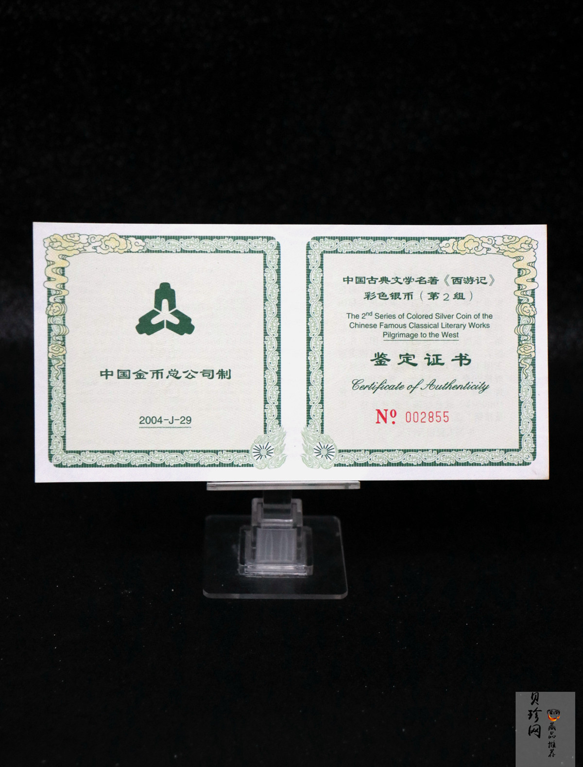 • 【040503】2004年中国古典文学名著——《西游记》彩色银纪念币(第2组)5盎司长方形彩色精制银