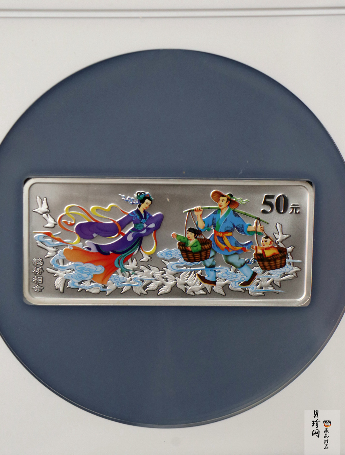 【030502】2003年中国民间神话故事彩色银纪念币(第3组)-鹊桥相会5盎司长方形彩色精制银币