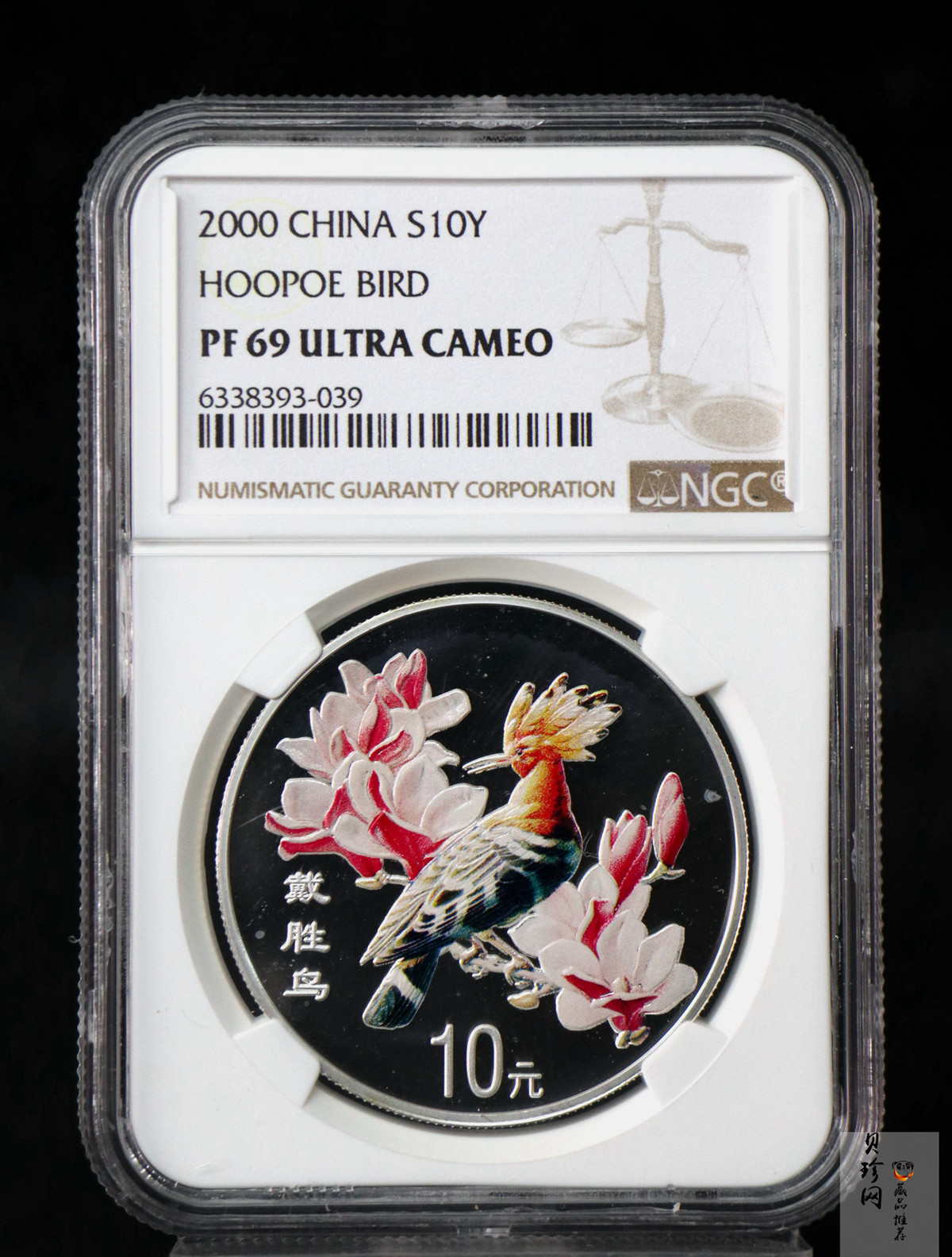 单币:2000年中国珍禽系列(戴胜鸟)彩色金银纪念币1盎司彩色精制银币