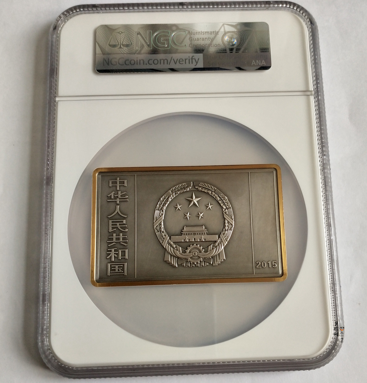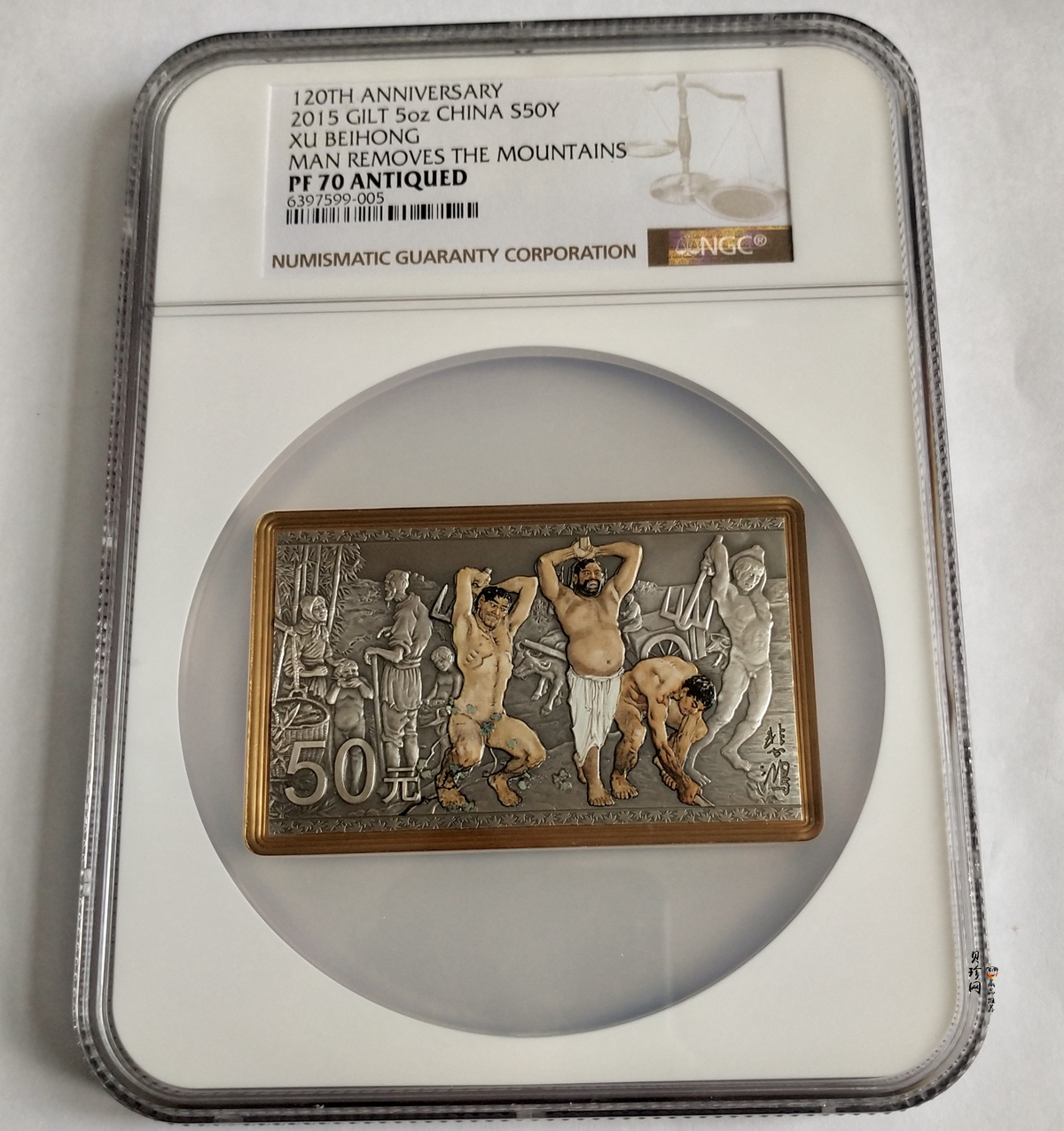 【150403】2015年近代国画大师徐悲鸿-愚公移山图5盎司长方形精制银币