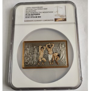 • 【150403】2015年近代国画大师徐悲鸿-愚公移山图5盎司长方形精制银币