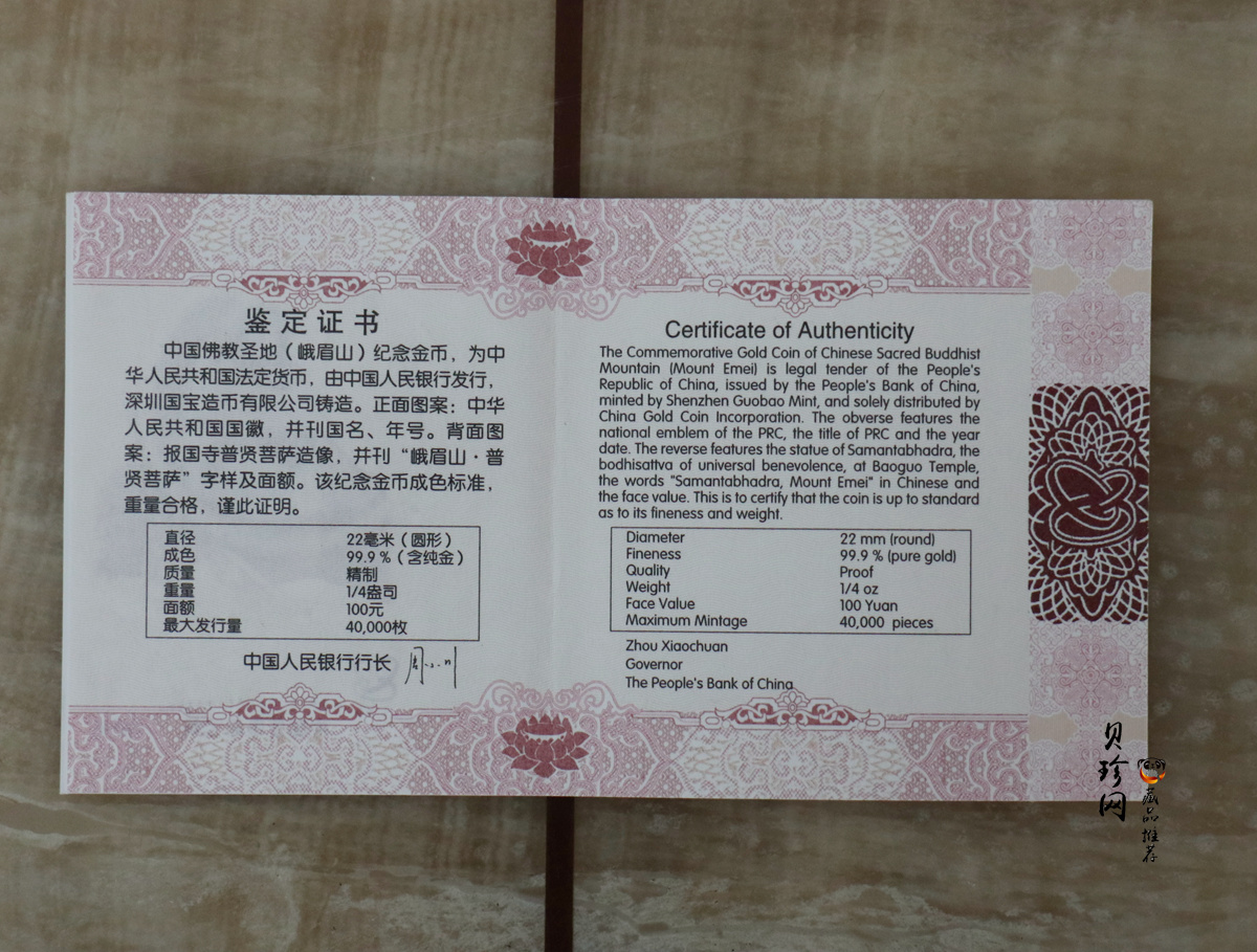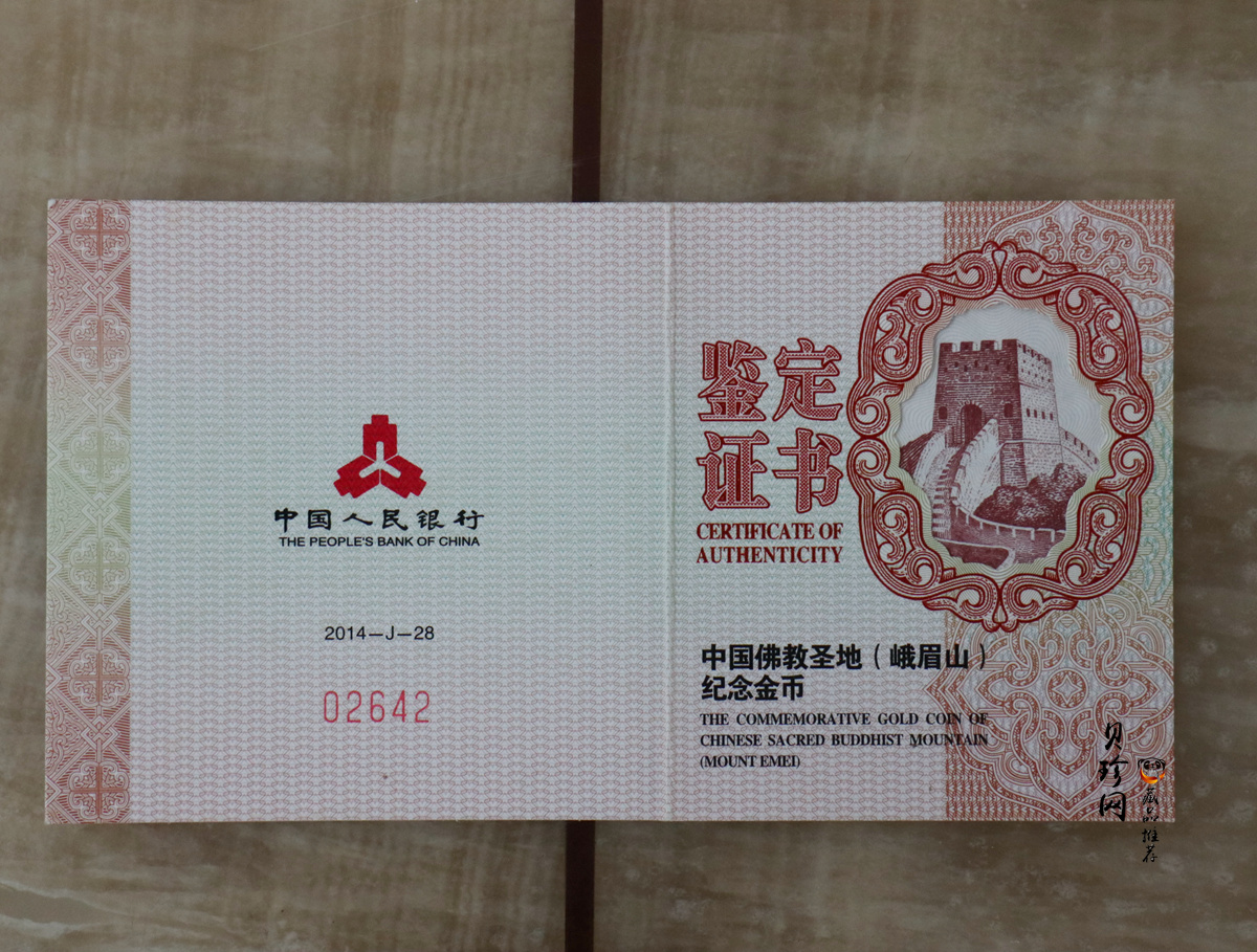 【140403】2014年中国佛教圣地-峨眉山 报国寺普贤菩萨1/4盎司精制金币