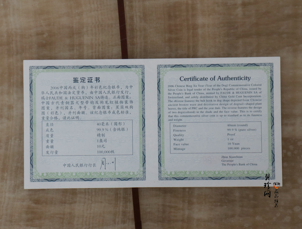 【060209】2006年丙戌狗年生肖1盎司精制彩银币