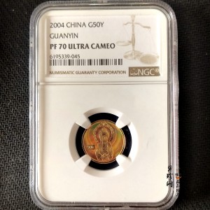 【040901】2004年观音金纪念币-白衣观音像1/10盎司幻彩精制金币