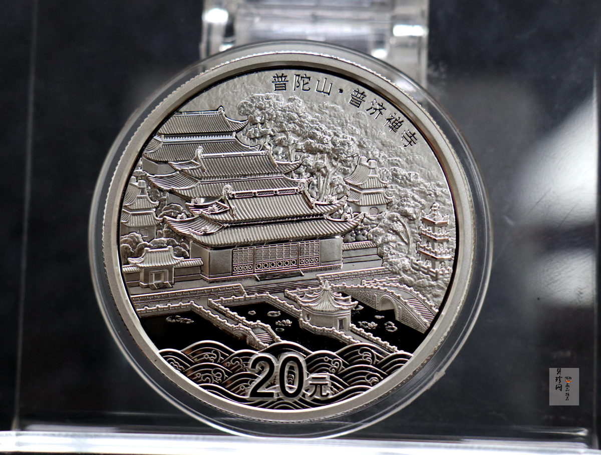 作为一座古老的宗教建筑,普济禅寺所具有的一切内涵就通过这种“自然”的物质形态,由我们想象、领悟、挖掘。佛家说,禅是无处不在的,既在于世外,在于禅寺,也在于山间的一花一草,一石一泉,所谓郁郁黄花,无非般若;清清翠竹,尽是法身。或许通过纪念币上的这座古老禅寺,我们也能寻找某种与菩萨心灵对话的渠道。于一切,观自在。